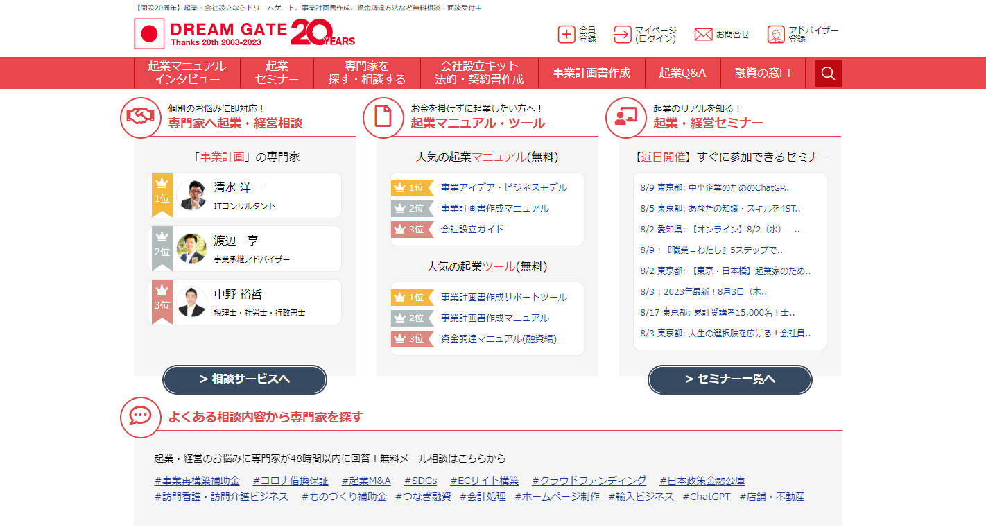 DREAM GATE(ドリームゲート)は起業や会社設立をサポートするためのさまざまなサービスを提供しています。