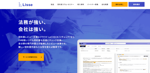このページでは、契約書レビュー支援ツールLeCHECKの特徴や費用、導入事例についてまとめています。
