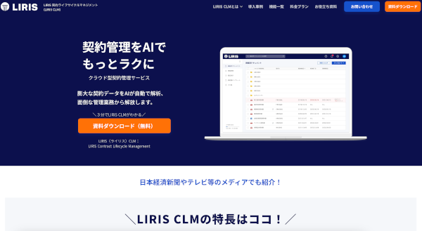 このページでは、LIRIS株式会社のLIRIS CLMの特徴や費用・導入事例などをまとめています。